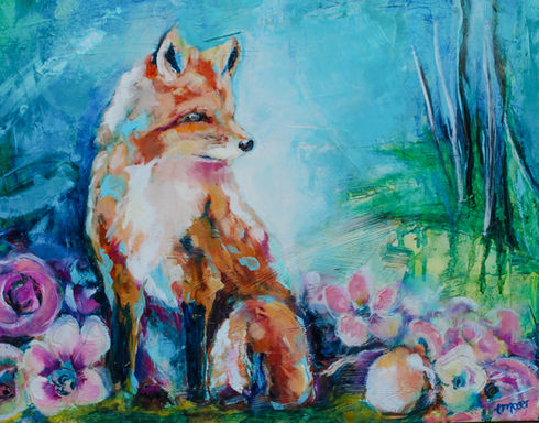 My paintings are layered conversations - between grief and wonder, discipline and intuition, logic and mystery. I write, collage, drip, spray paint onto the canvas, and let what’s meant to stay reveal itself. Foxes, florals, various wildlife, and symbols I don’t always fully decode at first glance - they arrive before I name them.